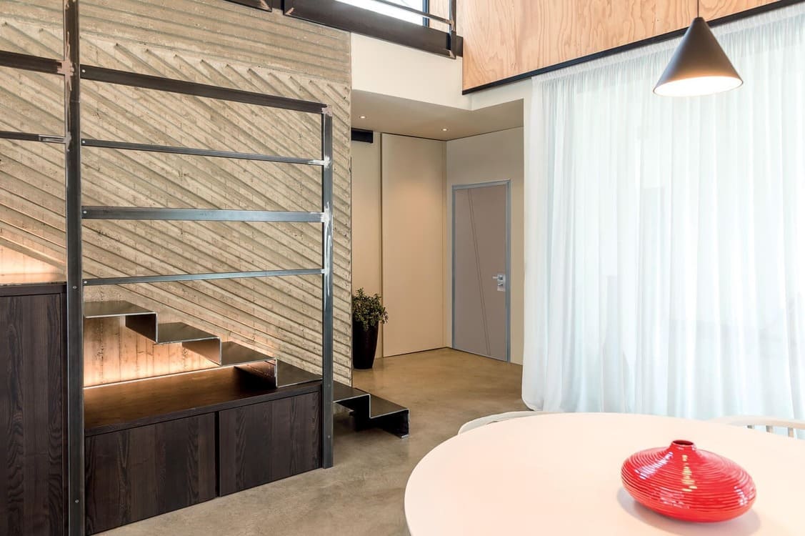 The lacquered RAL 1019 “INTRECCIO VERTICALE” model is embellished by a burnished steel insert. The squared H4 handle, with graphite grey finish, is matched to the frame’s burnished finish. On the right, as with a curtain, is the “INTRECCIO ORIZZONTALE” model, with its distinct milling in two different sizes (50 and 70 mm).