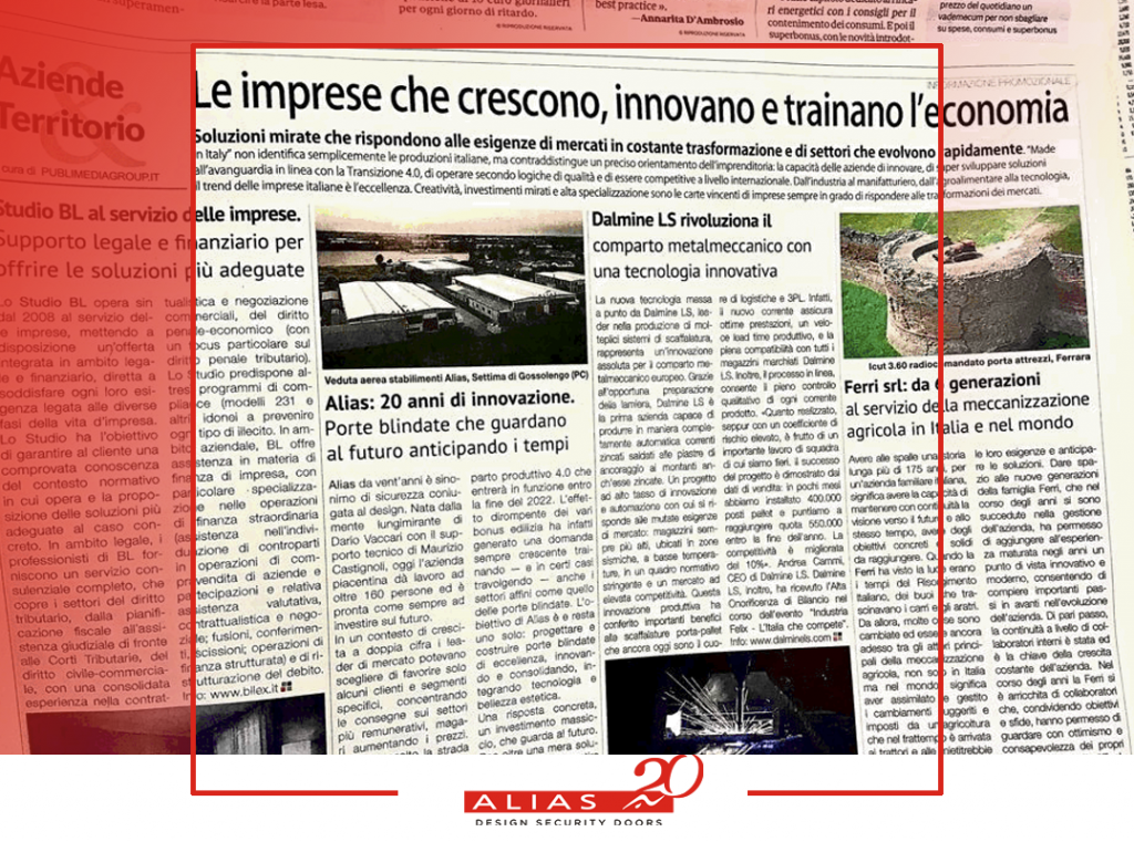 Nel nostro ventesimo anniversario il racconto della storia di Alias trova spazio nelle prestigiose pagine del Sole24Ore, uno dei quotidiani economici e finanziari più prestigiosi d’Italia. Uno sguardo dall’alto che evidenzia come la crescita sia sempre stata accompagnata da una visione chiara e coraggiosa. In edicola mercoledì 30 novembre 2022.